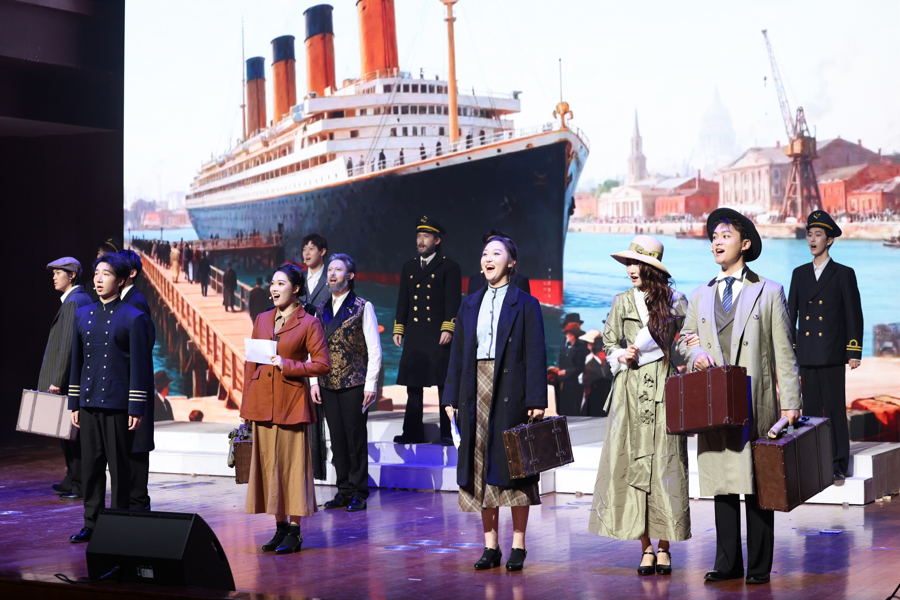 音乐剧节期间举办的教学成果展成为“创新秀场”:中央戏剧学院、北京舞蹈学院等10所院校带来原创片段,如上音学生创作的《敦煌谣》,用古筝、箜篌演绎西域风情,舞蹈融合敦煌壁画中的“飞天”姿态;压轴的《泰坦尼克号》教学音乐会,学生在舞台设计中加入“中国红”元素,让“生命绝唱”多了一份东方温情,展现出“教创演研一体化”的培养成效。