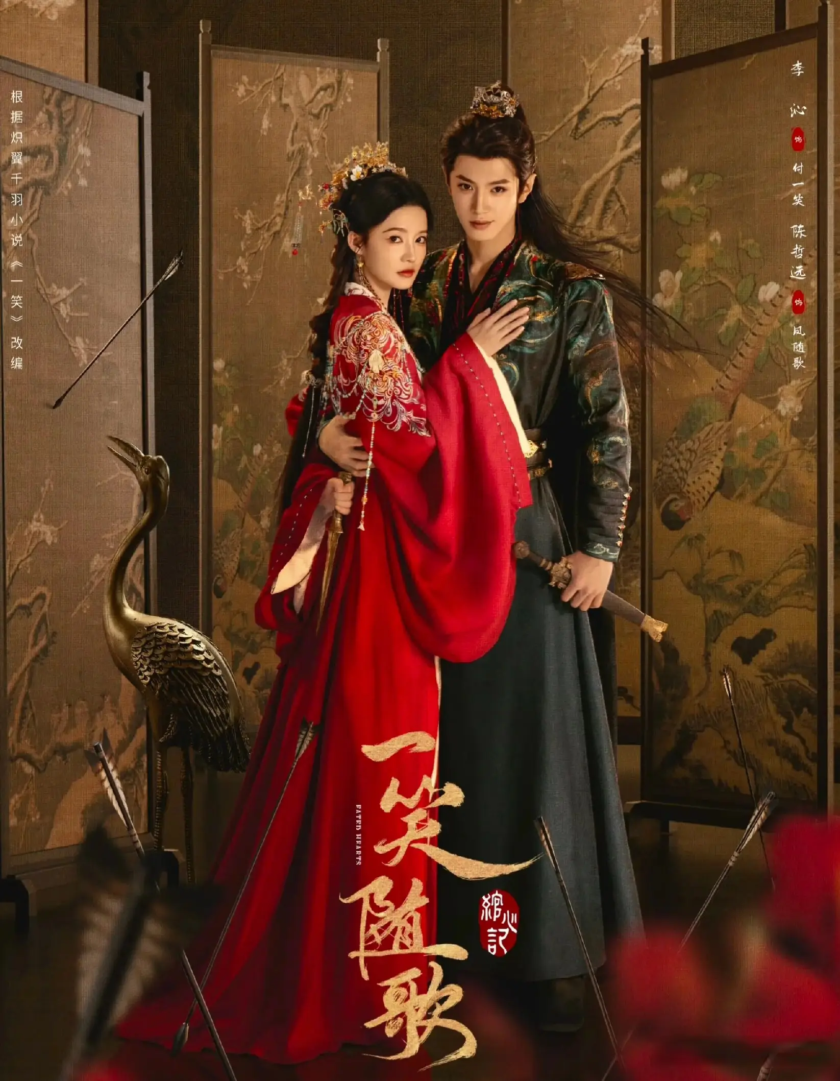 《一笑随歌》改编自炽翼千羽的小说《一笑》,讲述锦绣国第一女射手付一笑(李沁 饰)与夙砂国大皇子凤随歌(陈哲远 饰)从相杀到相爱的权谋爱情故事。